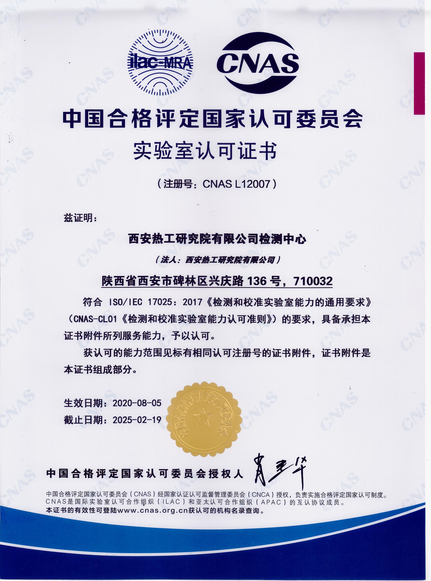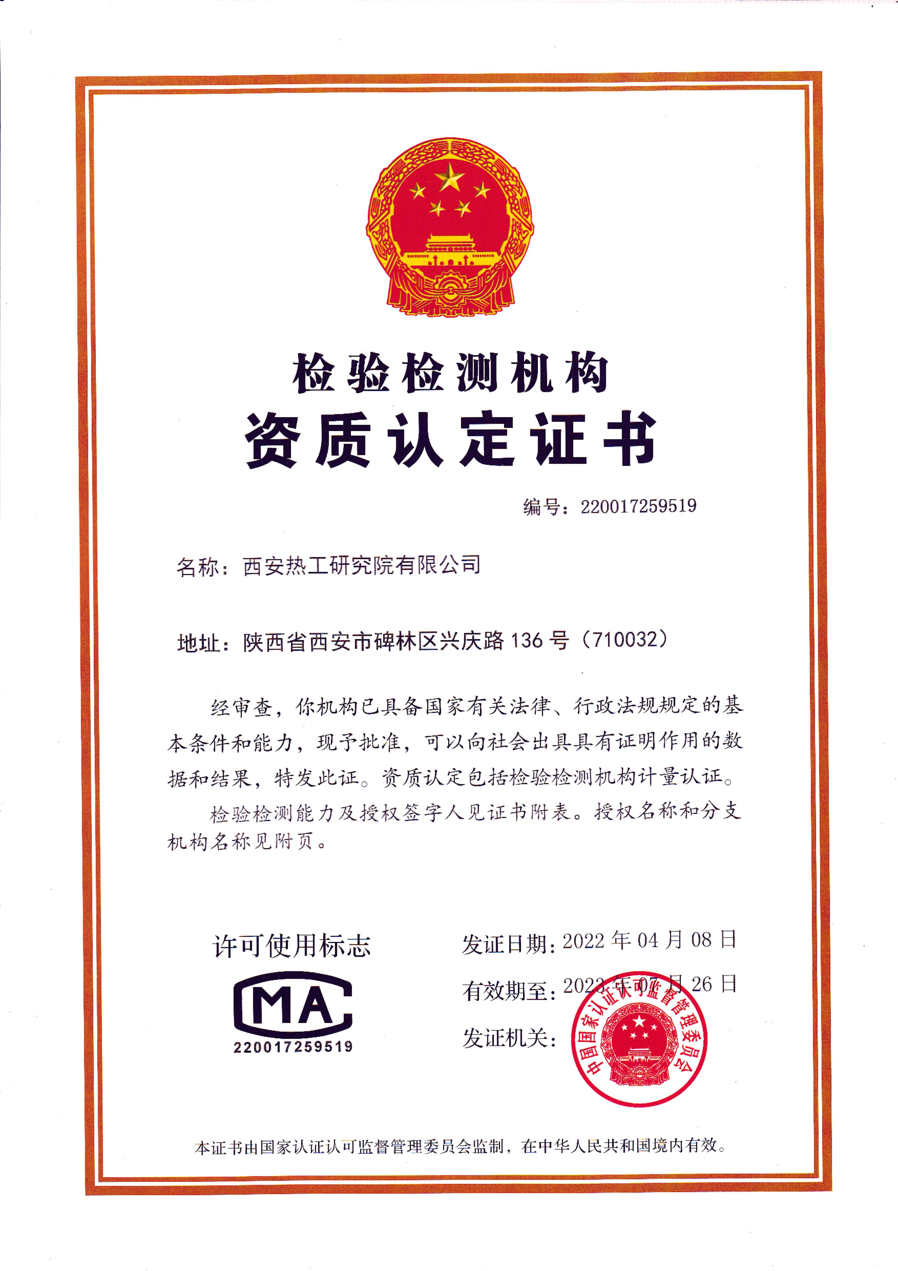 电力工业热力发电设备及材料质量检验测试中心检验检测机构资质认定证书